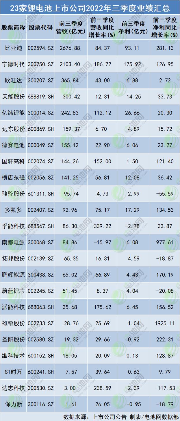 淨利(lì)方面,23家上市(shi)公司中20家淨(jing)利潤爲正值(zhi),淨利總額383.81億(yi)元,平均🌈淨利(li)潤16.69億元,其中(zhōng)比亞迪、甯德(dé)時代、億緯锂(li)能、多氟多🌍、天(tiān)能股份、橫店(dian)東磁淨利超(chao)10億元,甯德時(shí)代🌏淨利達175.92億(yì)元;18家淨利同(tóng)比正增📱長,其(qí)中,比亞☂️迪、雄(xiong)韬股份、南都(dōu)電源、聖陽股(gu)份、鵬輝能源(yuán)、派能科☂️技、多(duō)氟多、維㊙️科技(jì)術、甯德時代(dài)、國軒高科10家(jiā)實現淨♌利同(tong)比翻倍增長(zhǎng),雄韬股份淨(jing)☁️利同比增長(zhǎng)超19倍。
