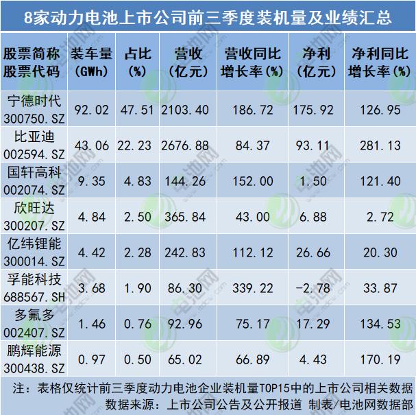 除(chú)中創新航未(wei)公開披露三(san)季報,電池網(wang)注意到,動力(li)電池企業‼️業(ye)績迎來盈利(li)修複。前三季(ji)度,8家動力電(diàn)池上市公司(si)✌️營收總額5777.49億(yi)元,平均營收(shou)722億元,其中,甯(níng)德時代、比亞(ya)♌迪營收超2000億(yì)元,甯德時代(dai)、國軒高科、億(yi)緯锂能、孚能(néng)科技🧡營收同(tóng)比增長翻倍(bèi)📧,孚能科技營(yíng)收同比增長(zhang)超3.3倍;利潤總(zǒng)額323億元,平均(jun1)淨利40.38億元,其(qí)中,甯德時代(dài)淨利超170億元(yuán),甯德時代、比(bǐ)亞迪⛱️、國軒高(gao)科、多氟🍓多、鵬(péng)輝能源淨利(lì)增長同比翻(fān)倍,比亞迪淨(jìng)利增長超2.8倍(bèi)。